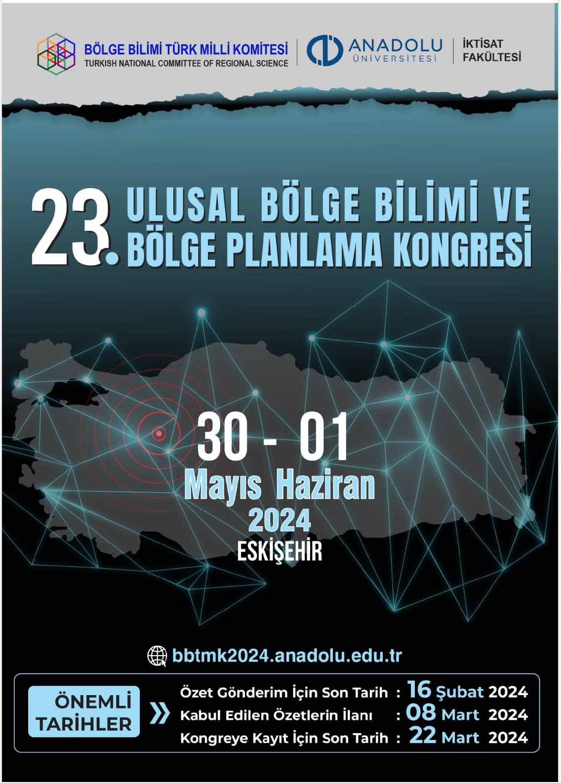 Değerli BBTMK Üyeleri, Bölge Bilimi Türk Milli Komitesi (BBTMK) olarak her yıl geleneksel olarak düzenlediğimiz Ulusal Bölge Bilimi ve Bölge Planlama Kongresi’ni bu yıl 21-23 Mayıs 2026 tarihleri arasında gerçekleştirecek olmanın heyecanını yaşıyoruz. İzmir Konak Belediyesi’nin ev sahipliğinde, Konak Belediyesi Türkan Saylan Kültür Merkezi’nde düzenlenecek olan kongremizde; göçten mekânsal eşitsizliklere, girişimcilikten yenilik ve ekonomik büyümeye, yükselen teknolojilerden savunma sanayine kadar bölgemizi ve dünyamızı …